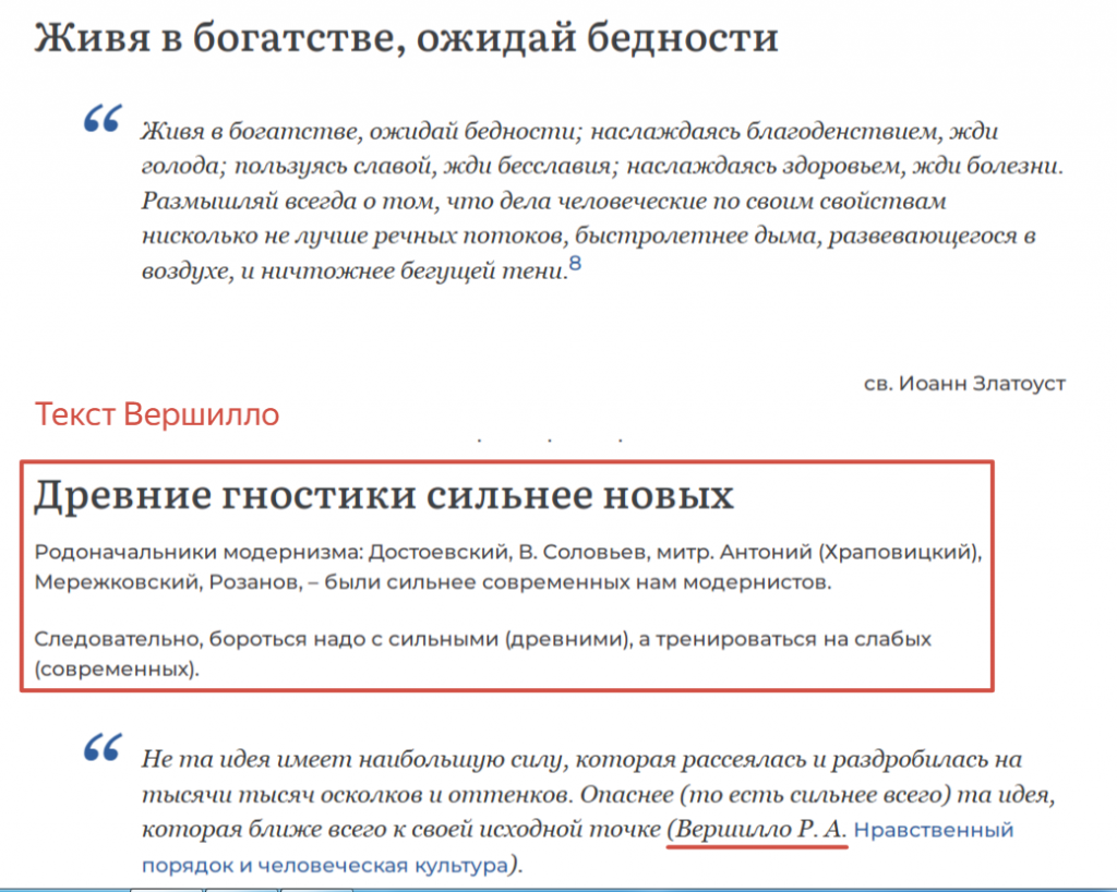 В тексте за авторством Романа Вершилло цитируются св. Иоанн Златоуст, Лейбниц, блж. Августин и… Роман Вершилло. Притом сам текст и без того является сборником цитат Вершилло.